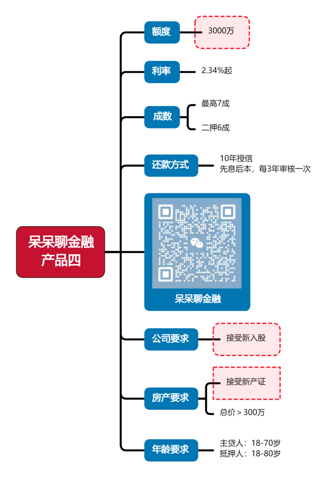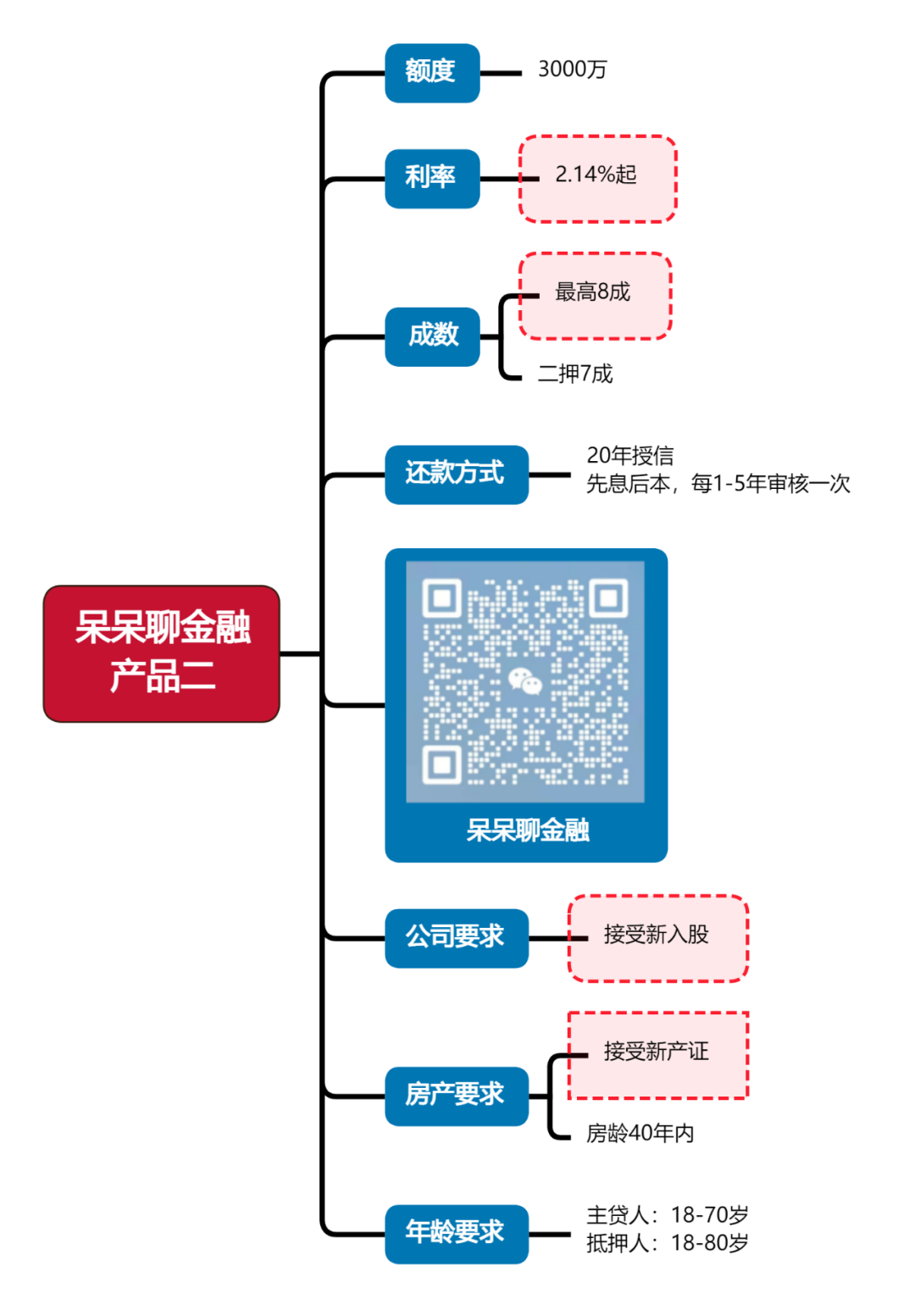 产品介绍:产品同样在单笔借款期限上进行了新增,新增二年审核、四年审核,这款产品最大的优势是低利率同时稳定,20年期限满足大多粉丝的期限要求,也是市场上少有的他行二押接受最高8成额度,如前期呆呆申请的一位粉丝,需要是高额度低利率,呆呆匹配下来选择了这家银行,既是当前二押中最优利率,又满足额度要求。
