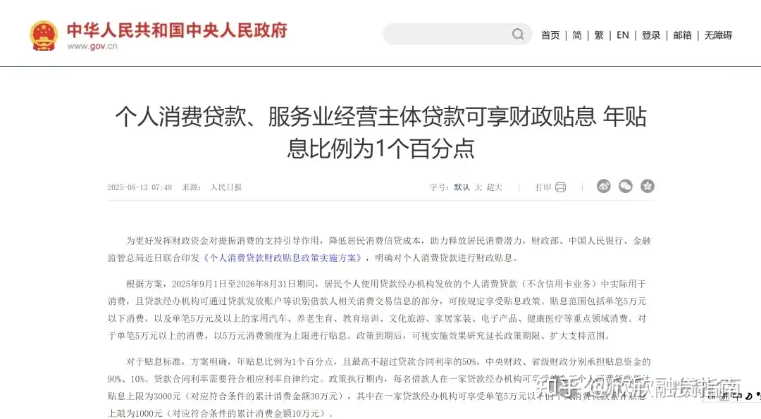 财政部、中国人民银行、金融监管总局印发《个人消费贷款财政贴息政策实施方案》,明确对符合条件的个人消费贷款给予财政贴息。